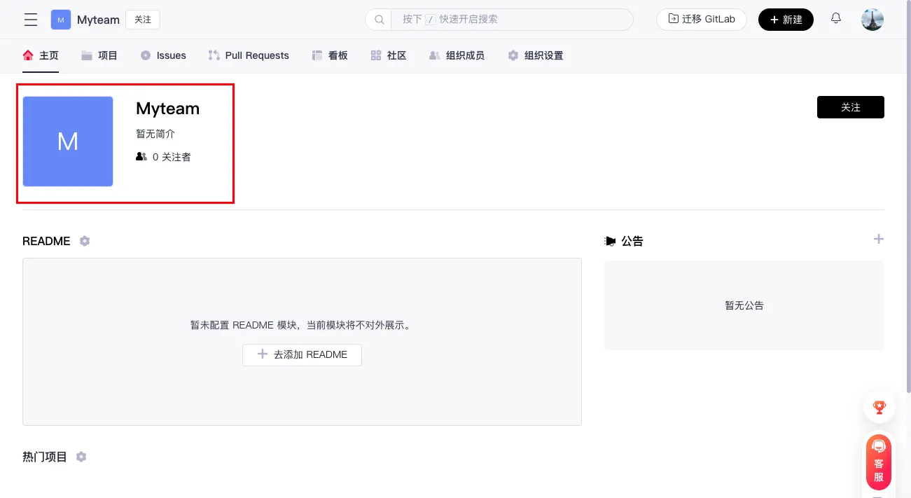 组织主页是您管理和配置组织及其项目的重要页面,提供了公告、README、组织简介等模块。您可以根据组织的需求和个人喜好调整内容和布局,从而创建一个更符合团队工作流程和文化的主页。
