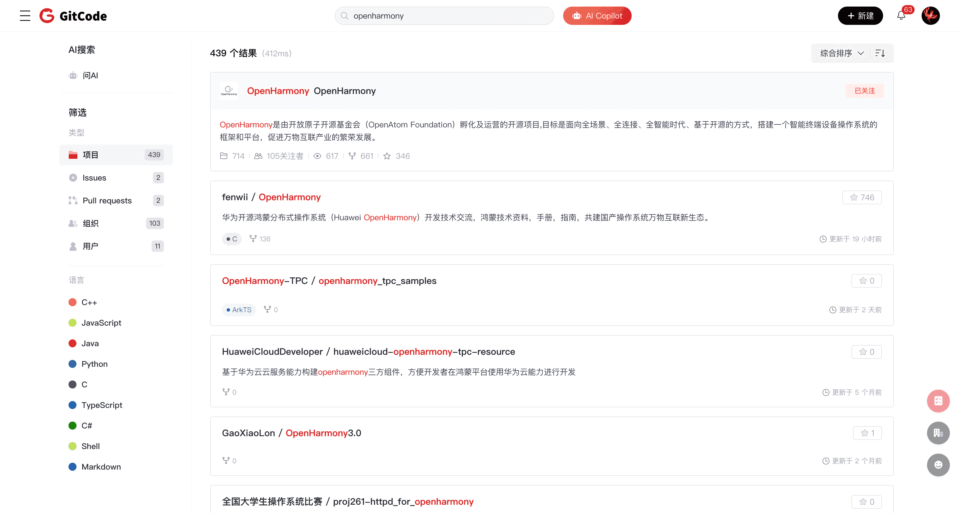 - 支持组织内/项目内搜索:用户可以在特定组织或项目内进行搜索,方便团队协作和项目管理
