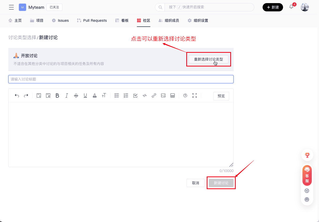 - After entering the discussion title and the specific content of the discussion, click 「Create Discussion」 to successfully create a discussion.