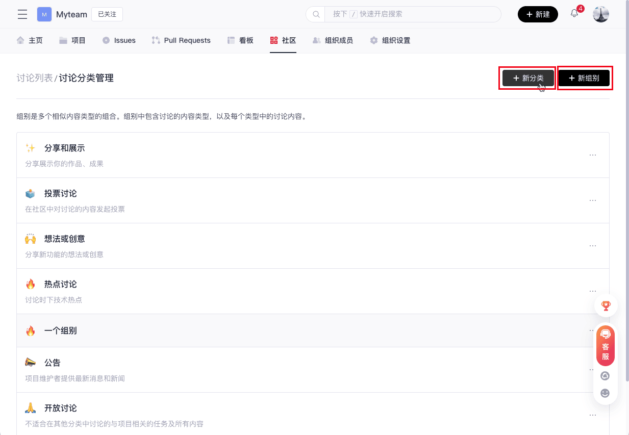 In the community organization, users can easily manage or participate in discussions, view different types of discussions, search for related content by keywords, and create new discussions. Organization administrators can also set up and manage the classification and groups of discussion content to better organize discussions, ensuring efficient information access and smooth team communication.