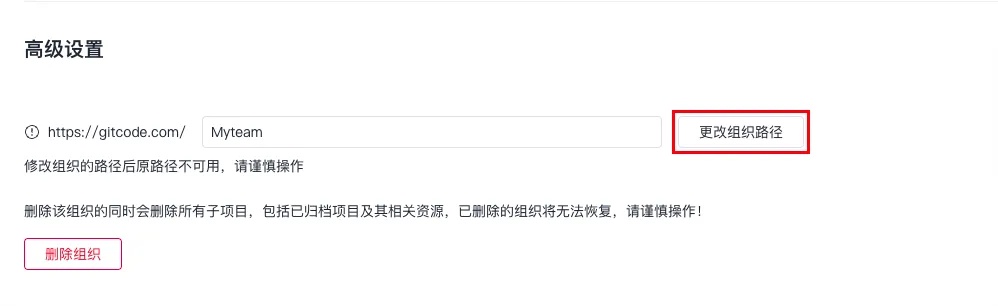 Once the organization path is modified, the original path will no longer be available. Please proceed with caution.