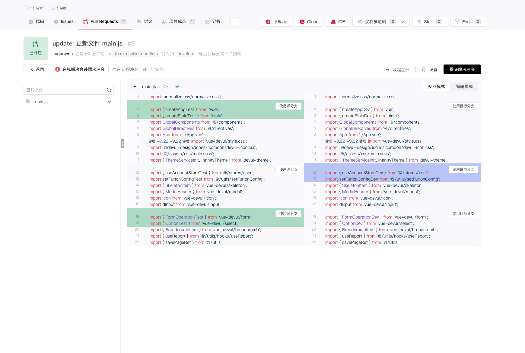 Visually display differences and support online editing, making it easy to resolve code merge issues.
