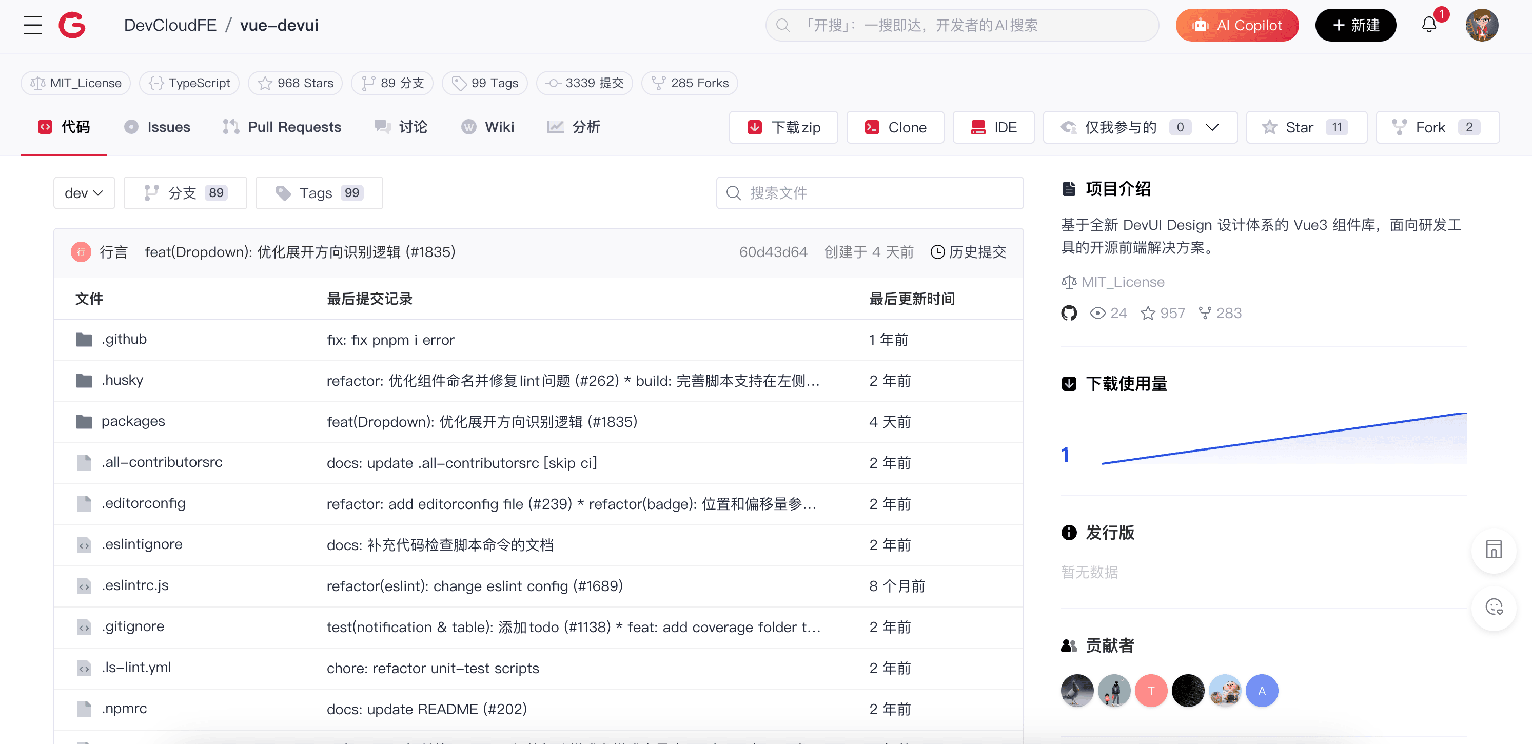 - Display of project download statistics, in addition to traditional star and fork counts, to provide a clear view of project usage.