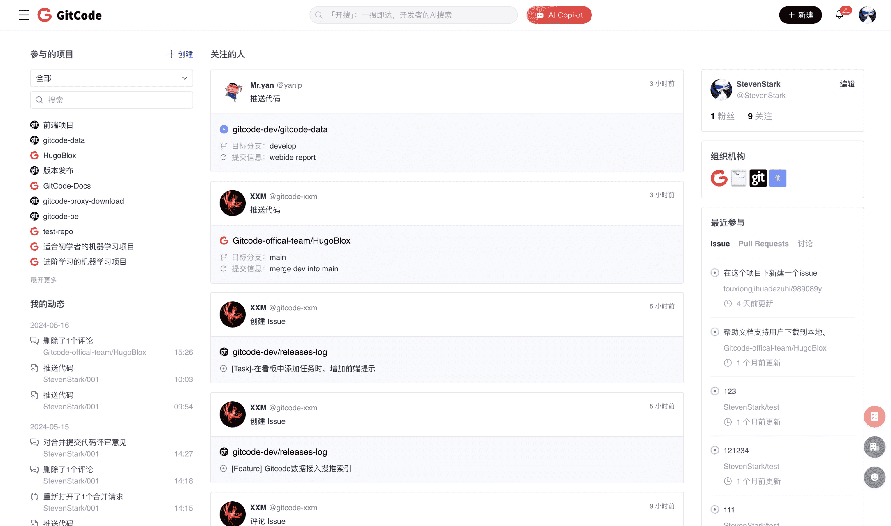 - Multiple search categories: Supports searching in projects, Issues, Pull Requests, users, organizations, and more to meet different user needs.